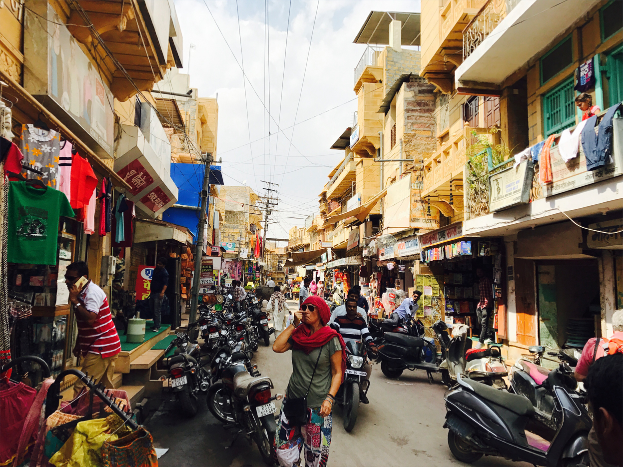 In tarda mattinata siamo pronti per partire all’esplorazione della città. Lungo la strada per raggiungere il forte, tra le polverose vie in terra battuta, ci imbattiamo subito in botteghe di ogni genere, che espongono al loro esterno le preziose merci. Tutto sembra essere proveniente da un’altra epoca, ma soprattutto nulla pare contraffatto. In questa parte d’India è ancora possibile acquistare antiquariato e pezzi dal valore unico semplicemente passeggiando per una strada qualsiasi.