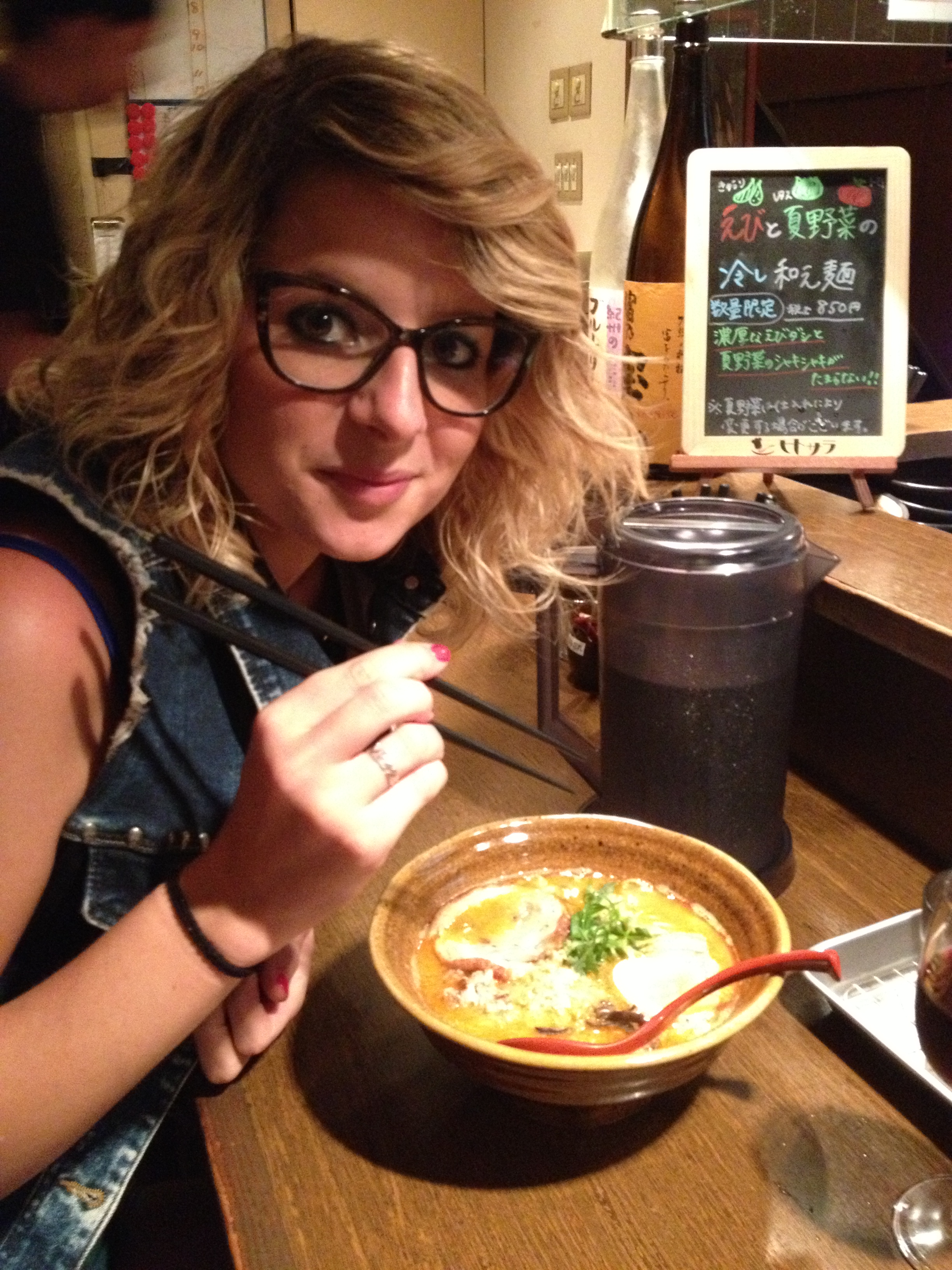 Rimaniamo affascinati dalla via di Dotombori, piena di locali e cartelloni pubblicitari, anche se molte serrande sono ancora abbassate e le luci al neon spente. Decidiamo per il momento di non dedicare tempo alla visita dei dintorni perché è ancora mattina, e sappiamo che questo quartiere prende vita solamente nel tardo pomeriggio. Ciò non ci ferma però dal fare una sosta in un piccolo chiosco per assaggiare finalmente il mio primo Ramen, esperienza che aspettavo da una vita. La prima cosa a colpirci è che l’ordine e il pagamento vanno effettuato a una macchinetta self-service all’esterno del locale. Poi si entra per dare lo scontrino all’oste. Ovviamente il piatto non tradisce le aspettative e divoro la mia porzione di spaghetti in brodo in men’ che non si dica.