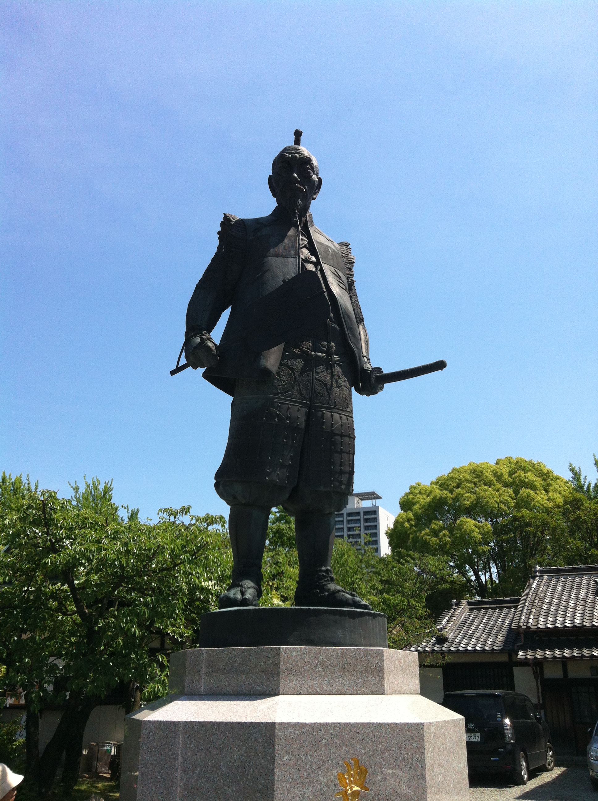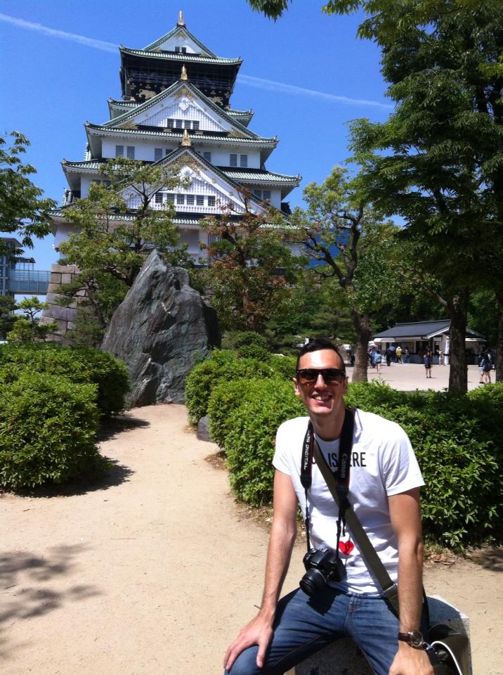 Raggiungiamo così il castello, nel parco cittadino. L’area del parco è molto vasta e si sviluppa tutt’attorno alla fortezza feudale, che salta subito all’occhio visti i suoi 58 metri di altezza. Per raggiungerla dobbiamo però oltrepassare l’ampio fossato e l’imponente cinta muraria. Lungo il percorso ci imbattiamo in diverse statue di antichi Daymio. Nonostante la folla l’atmosfera è particolarmente quieta e rilassante. Ci ritroviamo poco dopo di fronte al castello, che si erige davanti a noi in tutta la sua magnificenza. Decidiamo di entrare, ma ad attenderci c’è una deludente sorpresa. L’interno della struttura, che ci aspettavamo essere antica, è intermante in cemento armato, con tanto di ascensore. Il bastione è infatti una ricostruzione recente dell’antica roccaforte, più volte crollata in seguito a incendi e guerre. Ciò nonostante l’esterno dell’edificio è molto suggestivo, e al suo interno abbiamo avuto il piacere di visitare il museo della storia di Osaka.
